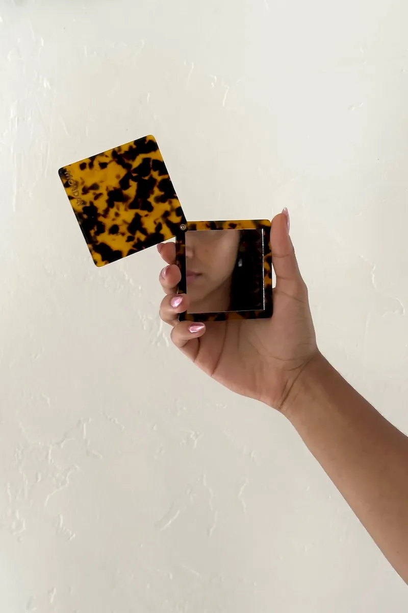 Give yourself a double take with our Acklins Mirror when your on the go! This chic tortoise shell mini mirror is designed to slip effortlessly into your purse or pocket. It features a smooth slide-open detail and a compact. portable case for convenience wherever you are. *Both mirrors sold separately.