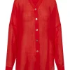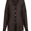 The ultimate beach to bar look can be achieved in the Barcelona Tunic. With an airy oversized fit. this transitional piece can be worn open. over your favorite swimwear or tied at the front with cute pants. Complete with side slits. flowy sleeves and center front seashell buttons.