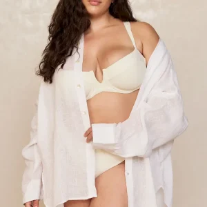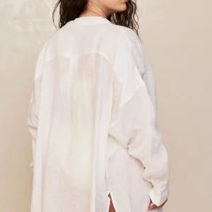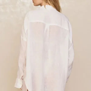 The ultimate beach to bar look can be achieved in the Barcelona Tunic. With an airy oversized fit. this transitional piece can be worn open. over your favorite swimwear or tied at the front with cute pants. Complete with side slits. flowy sleeves and center front seashell buttons.