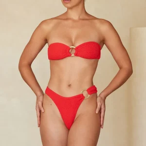 Meet the Bronte Bottom. a playful and stylish swimwear essential designed to make a statement. Finished with a chic gold ring detail at the side. this cheeky swim bottom adds a touch of luxury to your look. ensuring you stand out with confidence. Our super supportive and flattering crinkle fabric is fully lined and tailored to make you look and feel your best.