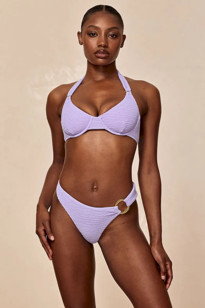 Meet the Bronte Bottom. a playful and stylish swimwear essential designed to make a statement. Finished with a chic gold ring detail at the side. this cheeky swim bottom adds a touch of luxury to your look. ensuring you stand out with confidence. Our super supportive and flattering crinkle fabric is fully lined and tailored to make you look and feel your best.