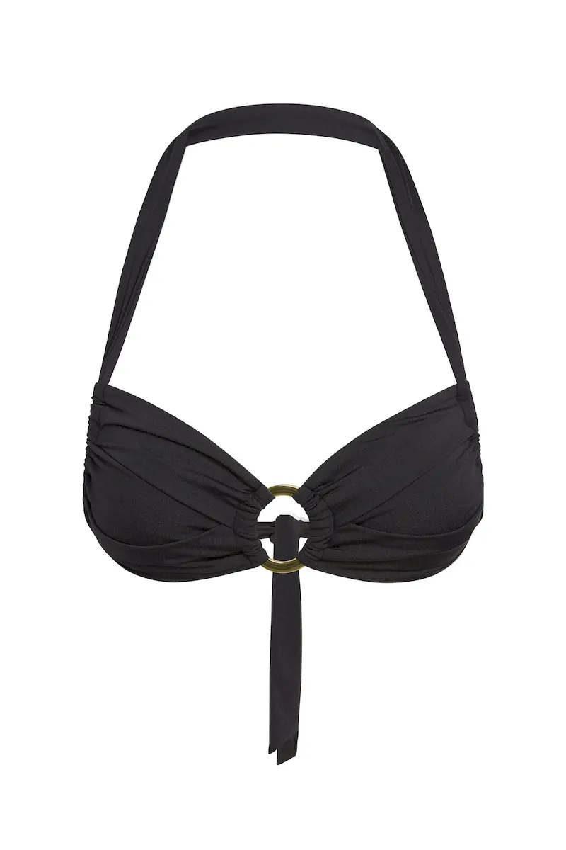 Bandeau shaped cups with gold ring and pleating detail