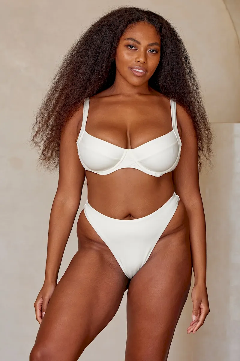 Less coverage. a high-cut leg and effortless. need we say more? The Capri Thong is our newest high waisted bottom with a thong back that is guaranteed to be your summer go-to to achieve the perfect tan.