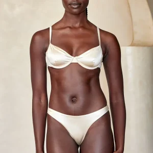 Our founders curated a special swim collection in celebration of our 10 year anniversary by hand-selecting a luxurious. satin shiny fabric that exudes confidence with every wear. This exclusive material offers a subtly distinct fit. setting it apart from our signature recycled jersey fabric that doesn’t stretch like our signature jersey. providing a more tailored and structured fit swimwear experience for you.