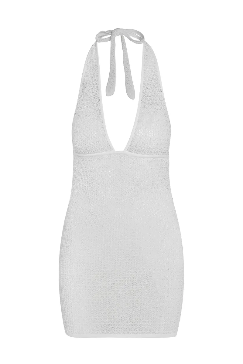 Our best selling knit dress is now available in a mini version. The Catania Mini Dress is designed to elevate every occasion and enhance your confidence with every wear. Tailored to embrace and flatter your figure while ensuring a perfect fit each wear. this delicate mini dress is complete with with a plunging v neck halter with adjustable neck ties and underbust tie.