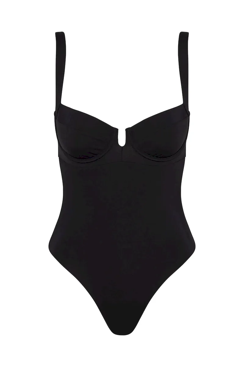 Our Clovelly One Piece now comes in a longer version! This best selling one piece is guaranteed to make you look and feel your best. With its underwire support. open back detail. adjustability and high leg cut. this figure flattering one piece is nothing short of perfection.