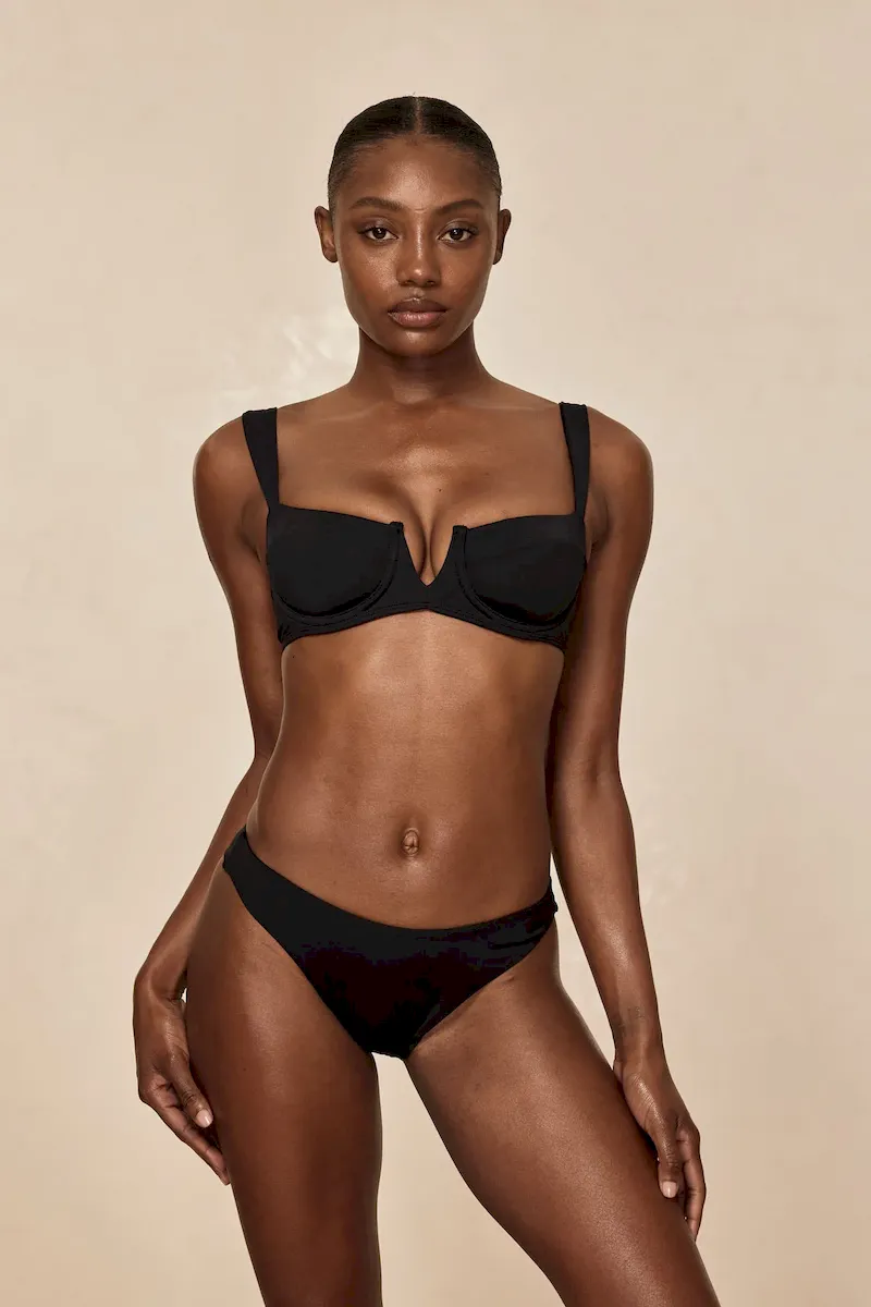 The Clovelly Top is one of our best sellers due to its flattering yet supportive design. This top features a built-in underwire that never digs. adjustable over-the-shoulder straps. and a tie back. allowing you to find the most comfortable fit for your body.