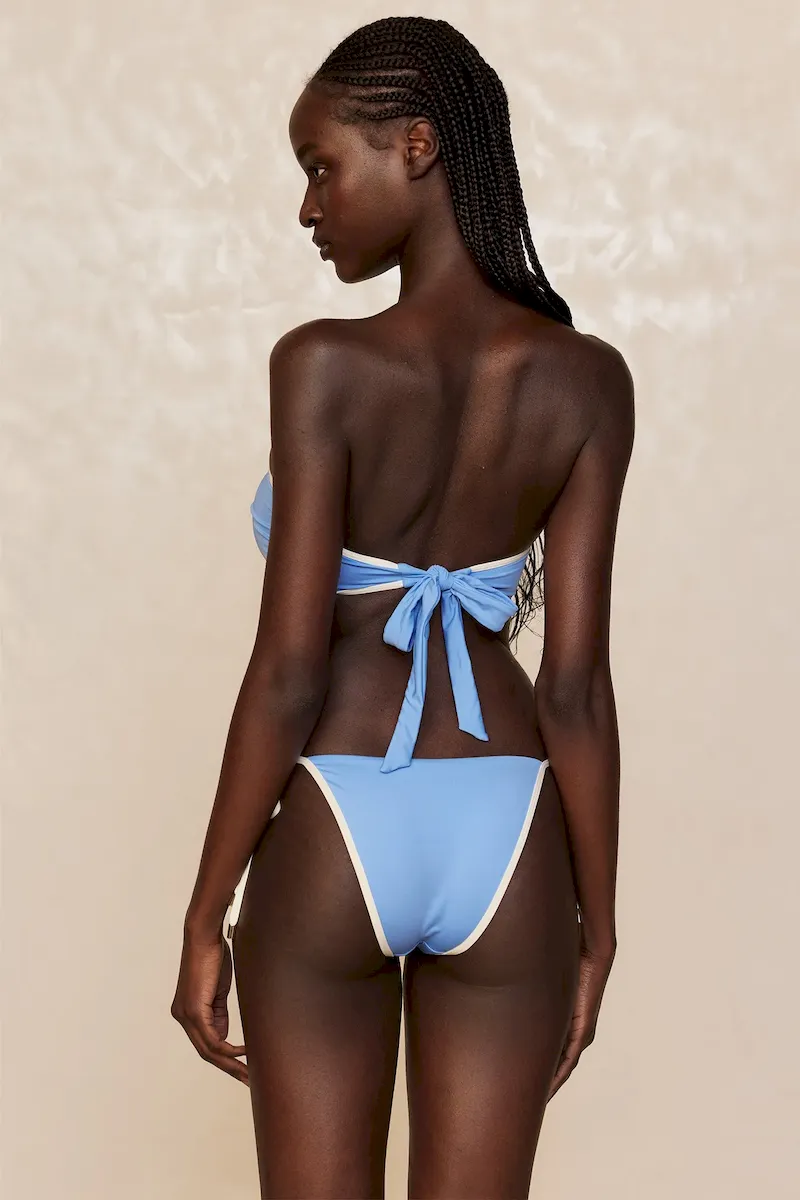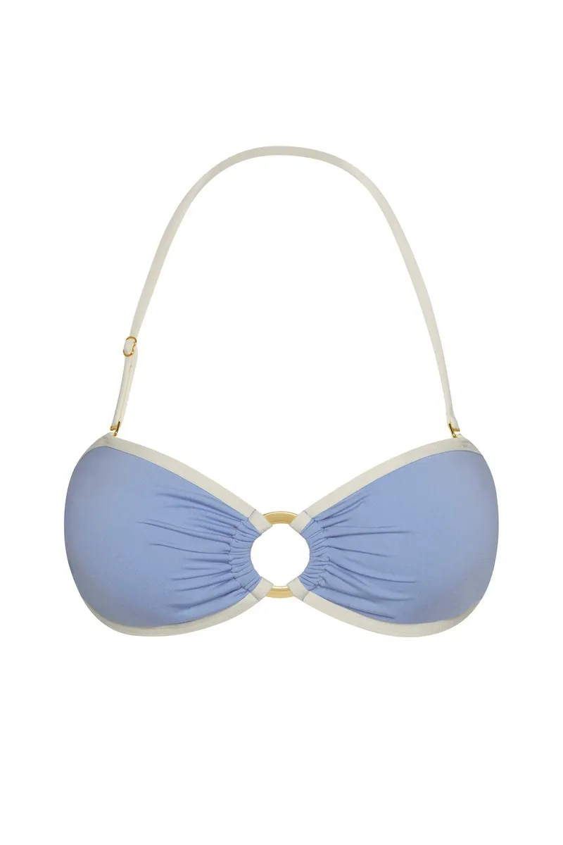 Soak in the sun while wearing the Costa Rica Top. This bandeau style top features a center front gold ring hardware and a removable halter strap that can be adjusted for the perfect amount of lift and support for all your beach adventures. Perfect for cup sizes A-D!