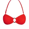 Soak in the sun while wearing the Costa Rica Top. This bandeau style top features a center front tortoise ring hardware and a removable halter strap that can be adjusted for the perfect amount of lift and support for all your beach adventures. Perfect for cup sizes A-D!