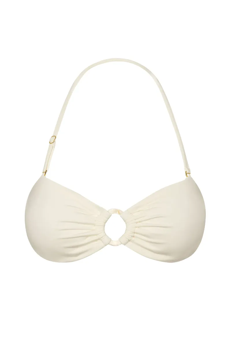 Soak in the sun while wearing the Costa Rica Top. This bandeau style top features a center front pearl ring hardware and a removable halter strap that can be adjusted for the perfect amount of lift and support for all your beach adventures. Perfect for cup sizes A-D!