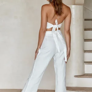 Ditch the denims and opt for chic linen in the Hamptons Pant. Made to show off your silhouette with its tailored fit. this must-have pant is complete with a back zip closure and kick crop flare. Pair with the Hamptons Top for an effortless summer look!
