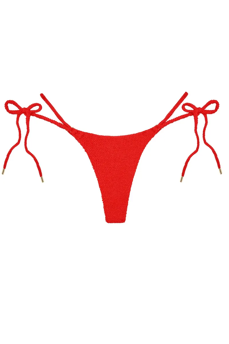 Satisfy your sun-soaking needs in the Hanalei Bottom. A play off of our famous Palma Bottom. this classic string bottom features dainty gold rings and adjustable ultra-thin straps for a barely-there feel. Our super supportive and flattering crinkle fabric is fully lined and tailored to make you look and feel your best.