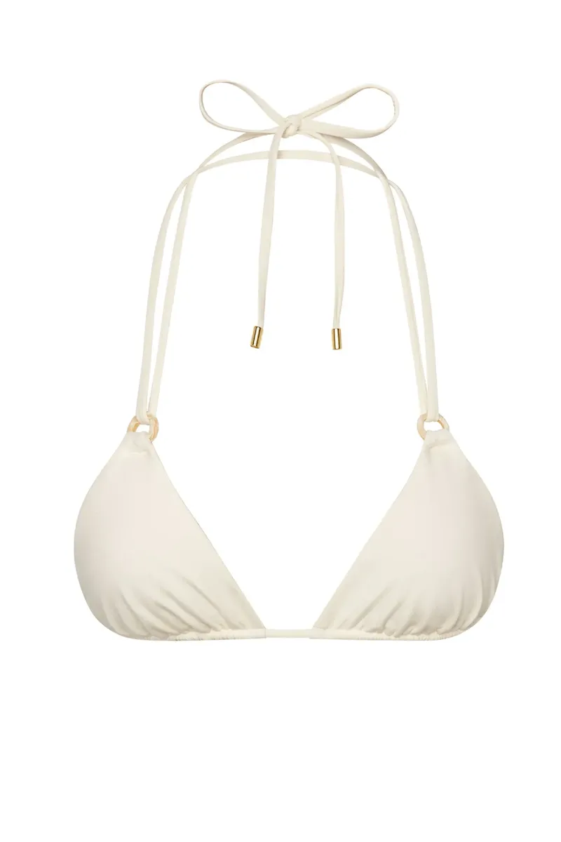 The Hanalei Top is a play on from our famous Palma Top. Designed with classic triangle coverage and adjustability. this barely-there top features pearl rings. ultra-thin straps and the same underbust support you’d expect.