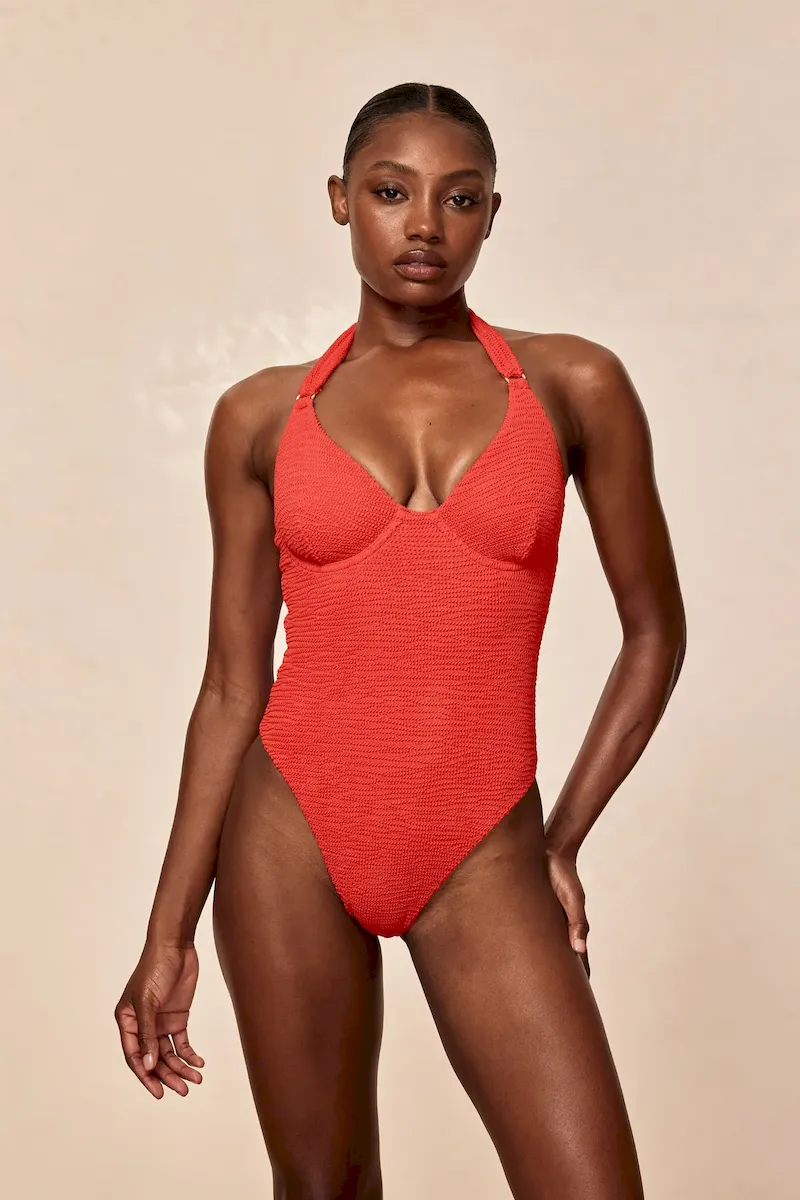If you love the support of our Honolulu Top but crave the elegance of a one piece. look no further! The Honolulu One Piece features a flattering high leg cut and cheeky bottom coverage that beautifully enhances any silhouette. Designed for maximum comfort and support. this one piece is complete with an adjustable halter neck tie closure. Our super supportive and flattering crinkle fabric is fully lined and tailored to make you look and feel your best.