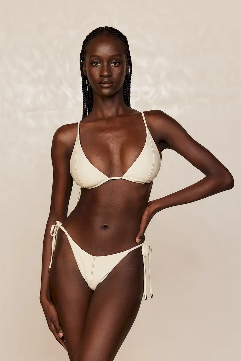 We love a good triangle bikini and we’ve given this style a chic upgrade. Featuring tall triangle cups and thin shoulder straps. the Kauai Top ensures the perfect fit with the adjustable cups and back tie.