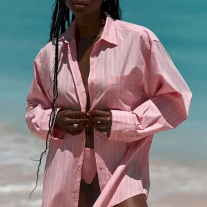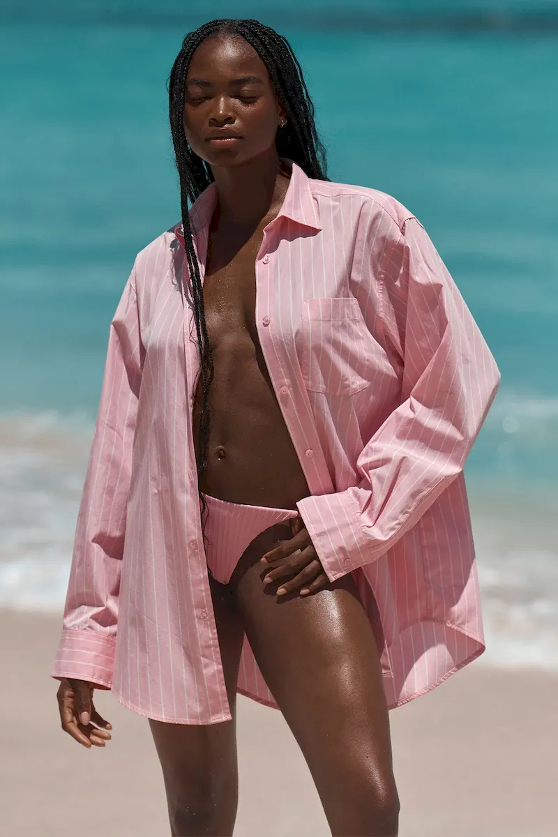 From the pool to cocktails. the La Jolla Shirt was made to give you a chic and effortless look. Designed in a lightweight airy cotton. this classic shirt is finished with a collar. pocket detail. long sleeves and center front buttons.