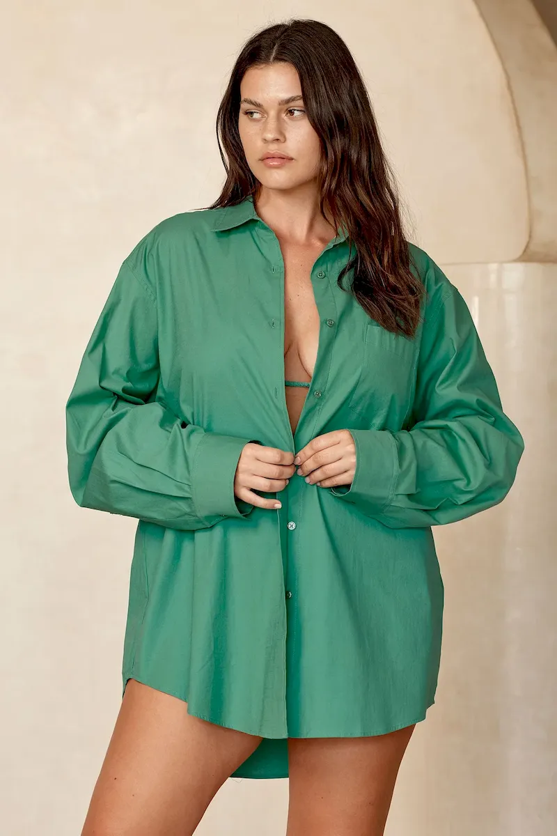 From the pool to cocktails. the La Jolla Shirt was made to give you a chic and effortless look. Designed in a lightweight airy cotton. this classic shirt is finished with a collar. pocket detail. long sleeves and center front buttons.