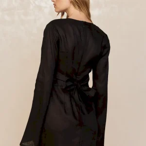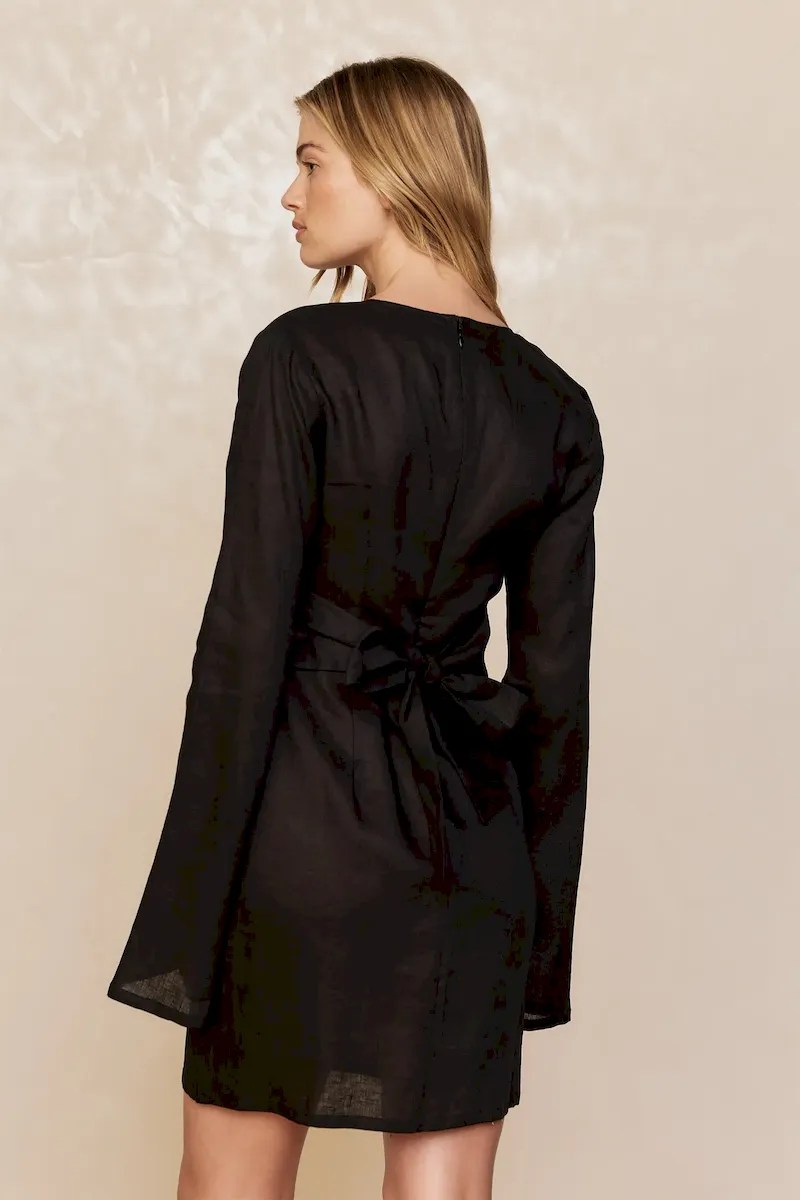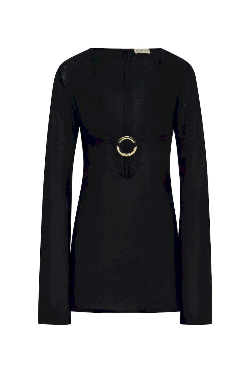 Our best selling dress now comes in a shorter option. This Montego Mini Dress is made in our newest linen fabric with a plunging neckline. gold ring detail and a flattering silhouette that makes it the perfect dress.