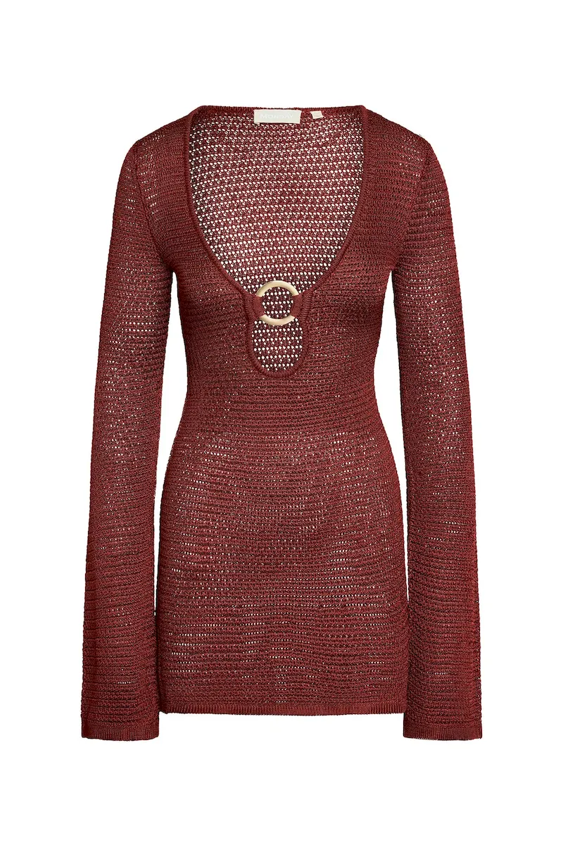 Our best selling dress now comes in a shorter option. This Montego Mini Dress is made in our new treble knit fabric with a plunging neckline. matte gold ring detail and a flattering silhouette that makes it the perfect dress.