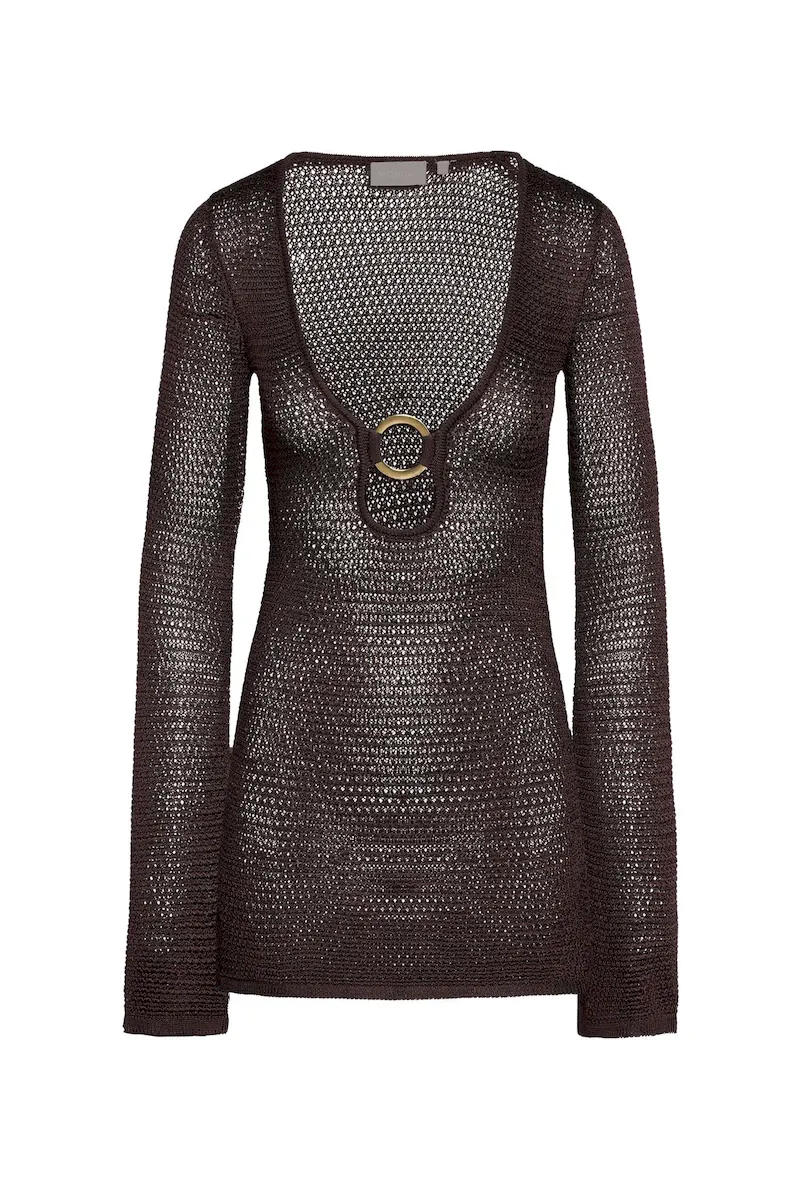 This garment is very delicate. In order to minimize snagging. please avoid rough surfaces and be careful when wearing jewelry and bags. Knitwear can stretch when hung so we recommend folding these garments to store them.