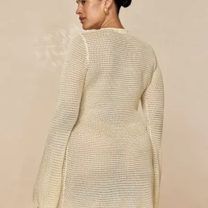 This garment is very delicate. In order to minimize snagging. please avoid rough surfaces and be careful when wearing jewelry and bags. Knitwear can stretch when hung so we recommend folding these garments to store them.