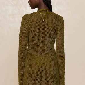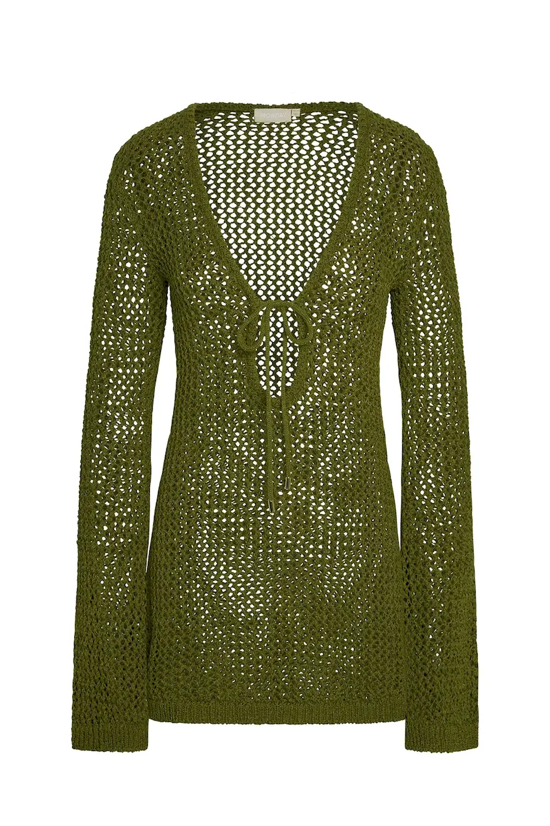 This garment is very delicate. In order to minimize snagging. please avoid rough surfaces and be careful when wearing jewelry and bags. Knitwear can stretch when hung so we recommend folding these garments to store them.