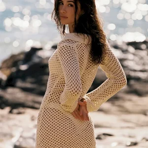 The Newport Dress is a chic & effortless mini dress that can go from vacation to brunch. This resort inspired collared dress is crafted from a soft breathable cotton that features a v-neckline and an open knit crochet design– that’s perfect for all day comfort!