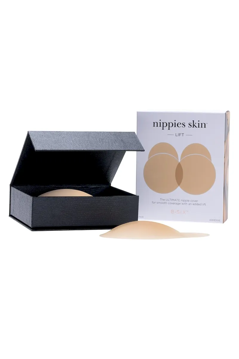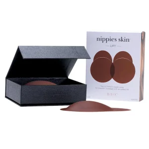 The same backless. bra-less. and strapless design of Nippies Skin. but with an added lift. This silicone nipple cover lifts your breasts up to 1 inch. so you can create your ideal cleavage.