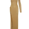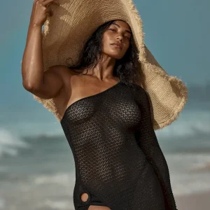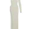 Our Palermo Dress is the perfect statement and irresistible choice for any occasion. Designed in our lace crochet fabric. this head turning dress features a one shoulder silhouette with an alluring side slit finished with a ring detail.