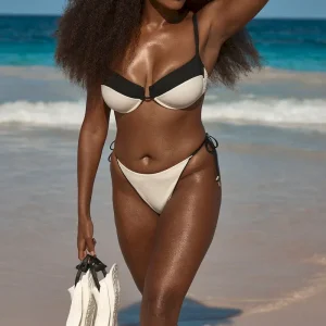 Adjustable side ties gold hardware detail