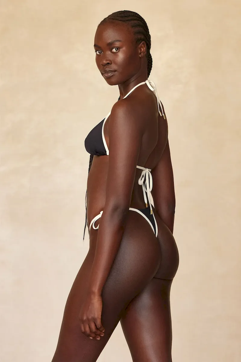 The Palma Top is a classic triangle style that is named by Natasha and Devin as their all time favorite. Designed with a soft fabric. this swim top is complete with removable padding and adjustable neck and back ties.