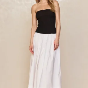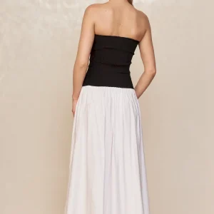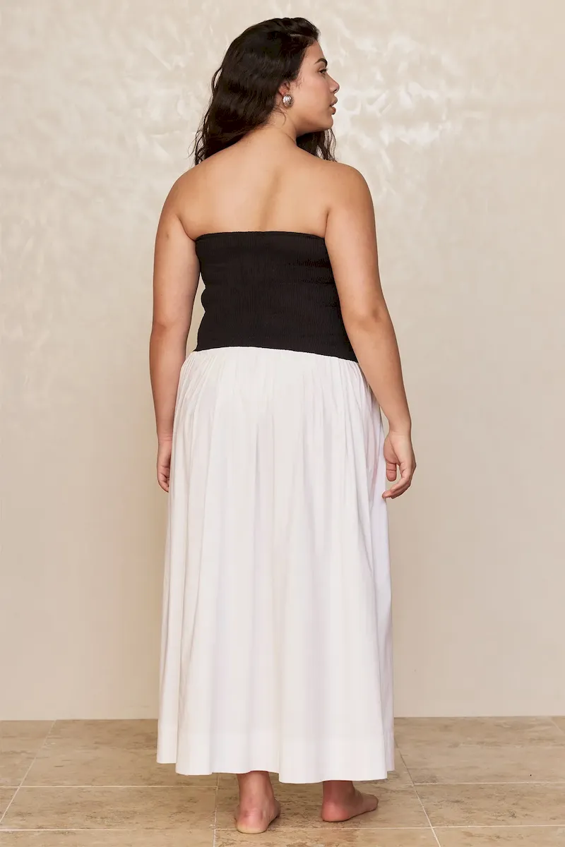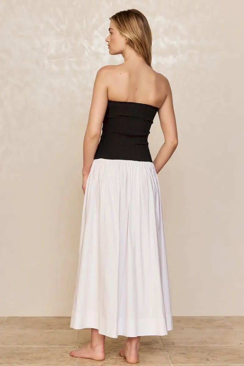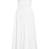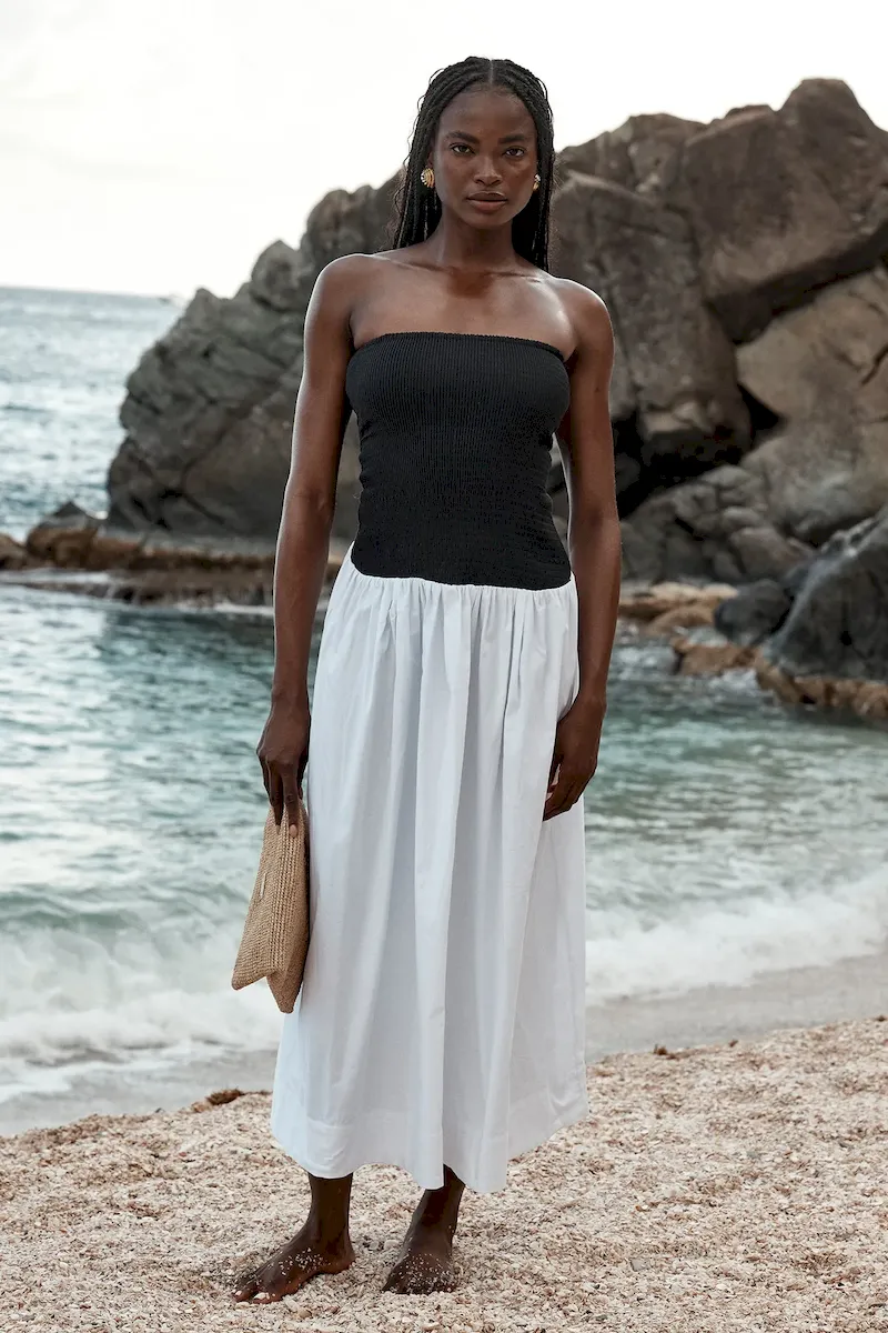 Effortless and feminine. the Rio Dress is your go-to one-and-done cotton look for warm-weather days. Designed with a flattering strapless neckline that offers both support and style. and an easy drop-waist silhouette that flows with ease. it blends charm and comfort seamlessly.