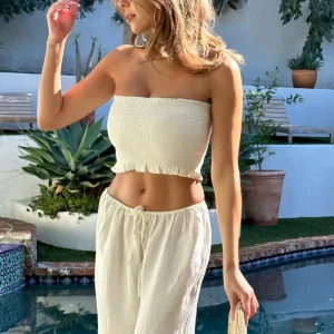 The Rio Top is an effortless addition to any wardrobe! With its fitted shape in our socked linen. this tube top pairs perfectly with our Belize Pant or any spring fit!