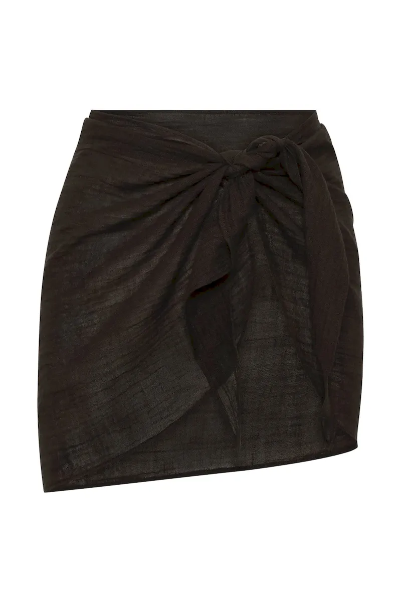 The South Beach Sarong is a suitcase-worthy piece that gives you optimal coverage for any sun-filled adventure. Made from our crinkle linen fabric. this airy mini sarong is our shortest sarong overing a semi-sheer finish. a rounded hem and adjustable tie.