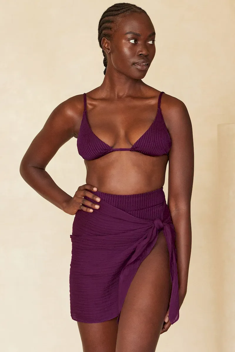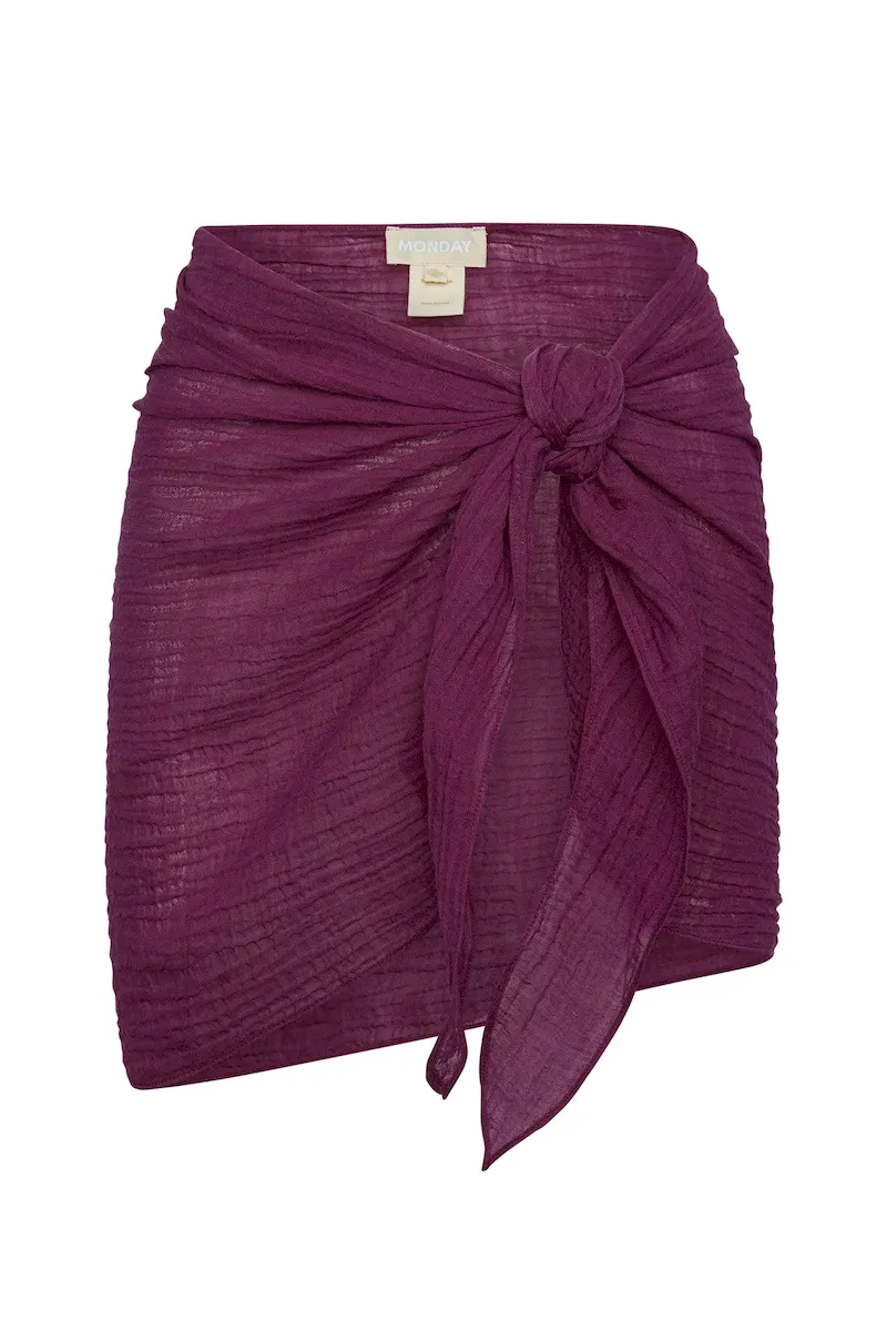The South Beach Sarong is a suitcase-worthy piece that gives you optimal coverage for any sun-filled adventure. Made from our crinkle linen fabric. this airy mini sarong is our shortest sarong overing a semi-sheer finish. a rounded hem and adjustable tie.