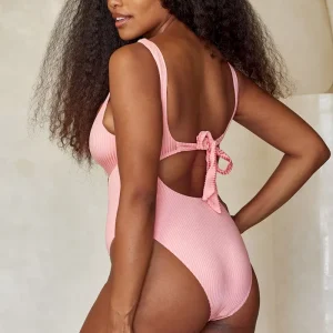 We can’t take our eyes off the St. Barth’s One Piece. From the sultry cut-out detail to the flattering silhouette. this must-have one piece is made to show off your figure. Complete with a rounded v-neckline. adjustable back tie closure and a ring detail. All eyes on you!