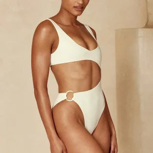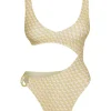 We can’t take our eyes off the St. Barth’s One Piece. From the sultry cut-out detail to the flattering silhouette. this must-have one piece is made to show off your figure. Complete with a rounded v-neckline. adjustable back tie closure and a gold ring detail. All eyes on you!