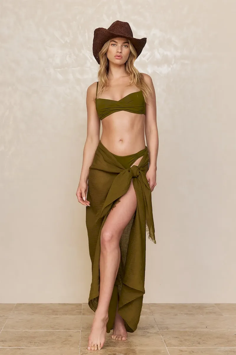 St. Tropez Sarong Olive Crinkle Linen – My Monday Swimwear