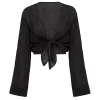 With its deep V front and elegant. billowing sleeves. the Tahiti Tie Top pairs perfectly with any bottom or easily double up as a cute crop with jeans. It ties in the front and has an elastic band hidden in the back. for that perfect fit. The picture-perfect addition to its bottom the Tahiti Pant.