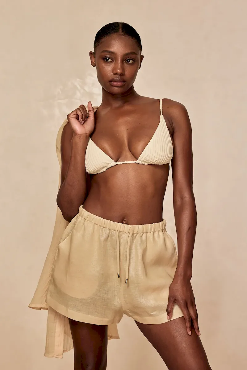 Introducing The Tuscany Short: your go-to for beachy. chic. and effortless style. With its elastic waist and adjustable drawstring. side seam pockets. and pull-on design. it offers a true-to-size relaxed fit for ultimate comfort. Perfect for seaside strolls or lounging under the sun. this short embodies the essence of resort wear.